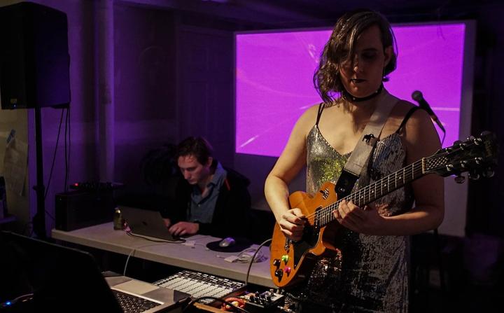 题图:Messica Arson正在开发他们在Synchrony聚会中的demo作品“厕所尖叫”,其中包含了一段Synchrony与会者在Amtrak火车车厢的厕所中尖叫的录音。