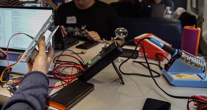 我发现在Synchrony是一小群相对陌生的人们,他们因为创造性的使用程序代码和类似的一些兴趣而聚集在一起。我看到人们在厕所隔间里对着麦克风尖叫,为微处理器编织小毛衣,并试图在火车餐车里焊接电子设备。我看到了一个充满着DIY冒险及挑战的活动——比赛获胜者的奖品在火车上丢失,而比赛场地也充满各种技术难题——这与我们平时习惯的完美无缺的商业科技活动形成了鲜明的对比。