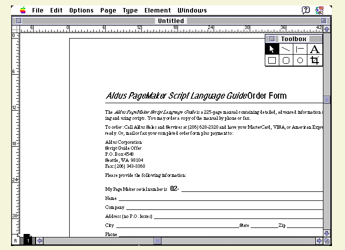 网页里的电脑博物馆的Macintosh Plus中,安装有比较早期的PageMaker 2.0版;在Macintosh II里则有稍微新一些的PageMaker 4.0a版。大家都可以试用一下来感受其中的变化。