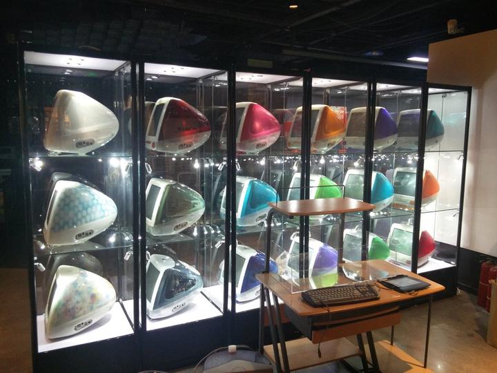 创业博物馆里的iMac墙很壮观,是 EasytimeTV 的“品果时光”苹果电脑博物馆的一部分