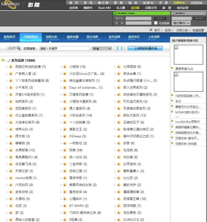 我做了个Flash动画查询机,大概有8000多个动画,都是2010年之前的,这个收藏里面没有游戏,只有纯动画,我比较喜欢那个音乐分类,里面好多回忆的说:Flash Archives