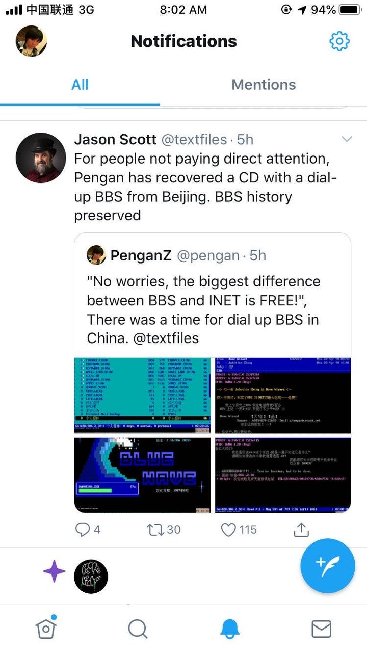 我把CFido北京天堂站的建站光盘上传到互联网档案馆,拍摄《BBS: The Documentary》的Jason Scott也转发了我的twitter。