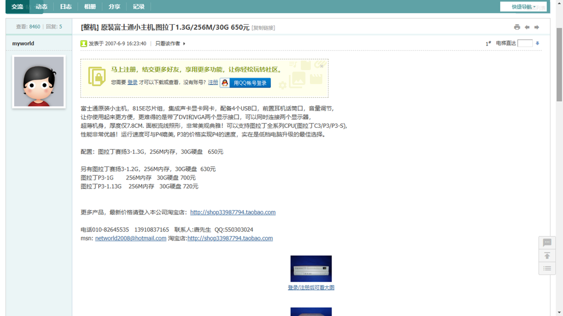 这是2007年一篇关于出售这种小主机的帖子[11],价格大约在700元左右,不算太贵。