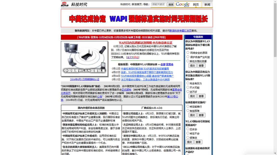 这是当时中国政府与海外工业界之间围绕WAPI展开谈判的新闻报道[8]。