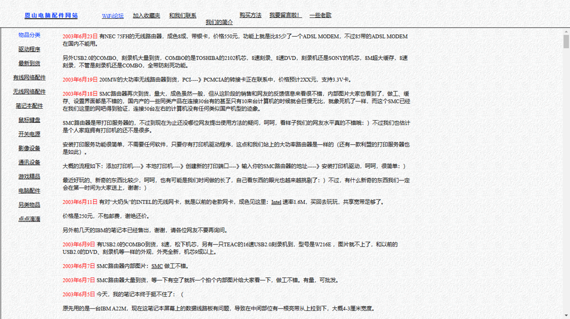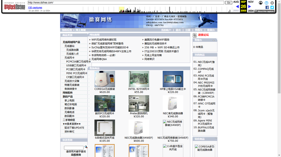 这些是德赛网络上列出的产品,截图存档于2005年之前。那时,官方市场上还没有无线局域网产品,所有的产品都在像这样的地下市场里。