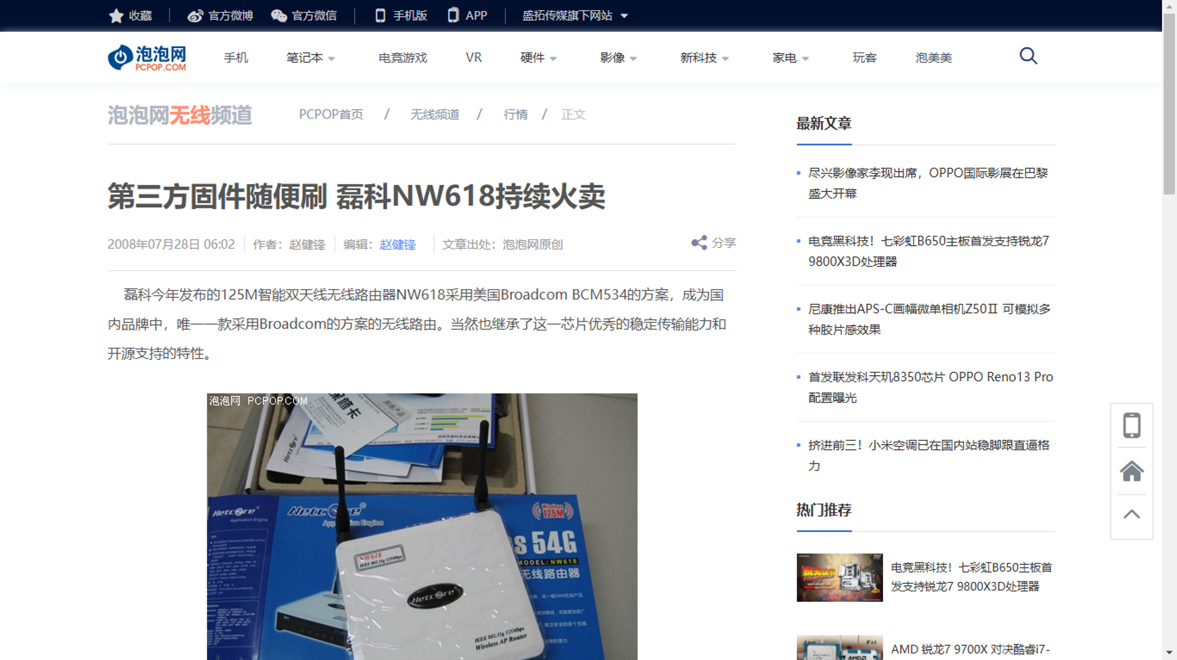 [10] 泡泡网无线频道 第三方固件随便刷 磊科NW618持续火卖 ,2008年7月