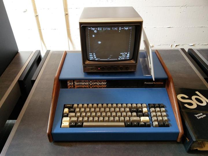 下面这台Sol-20电脑是由著名的“家酿电脑俱乐部”会长Lee Felsenstein于1976年设计的,略晚于Apple I,不过由于Sol-20和上面的IMSAI、Cromemco电脑采用同样的S-100总线,让这台早期的家用电脑具有非常强大的扩展性。直到2015年的电影《史蒂夫·乔布斯》中,仍然能看到沃兹和乔布斯为Apple II扩展槽数量的争执。