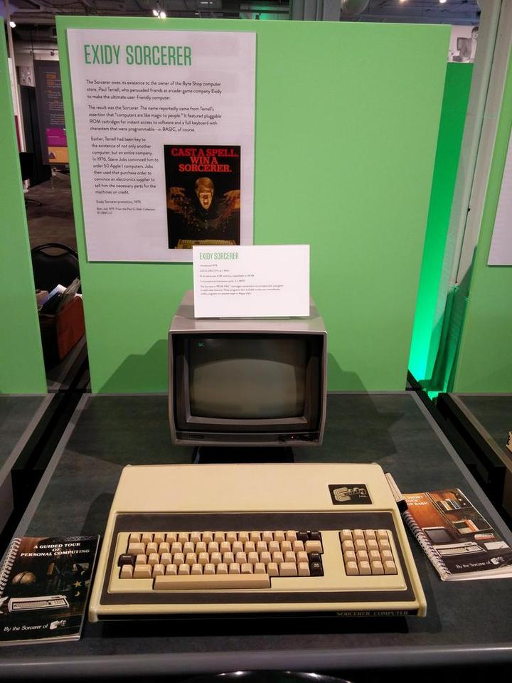 Exidy Sorcerer(巫师)是当时最大的街机游戏开发商Exidy的个人电脑产品,1978年推出的Sorcerer希望能够实现更加容易操作、兼容性和扩展性也都更好的个人电脑产品,Sorcerer采用了和TRS-80相同的Z80处理器,并具备了可以连接普通显示器和电视机的复合视频接口(TRS-80和PET都需要专用显示器),标准的Centronics并口和RS-232串口,可以像游戏机一样插卡即用的“ROM-PAC”卡槽,连接磁带机的音频接口,甚至包括了可以连接S-100扩展箱的50针接口。