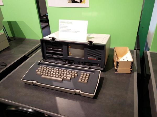 在液晶显示器被应用在现代意义的笔记本电脑之前,已经有许多厂家开始尝试生产便携式电脑了,Osborne是最早生产便携式电脑的厂家之一,其著名的Osborne 1(1981年)是第一款商业上取得成功的编写式电脑,而Osborne Executive是他们的第二款产品(1982年)。这部便携式电脑的性能相当强大,装备了6Mhz的Z80B CPU和124KB内存,以及双5.25寸软驱,价格自然也是不菲,$2,495(今天的$6000左右)的售价果然配得上总裁(Executive)的称号。
