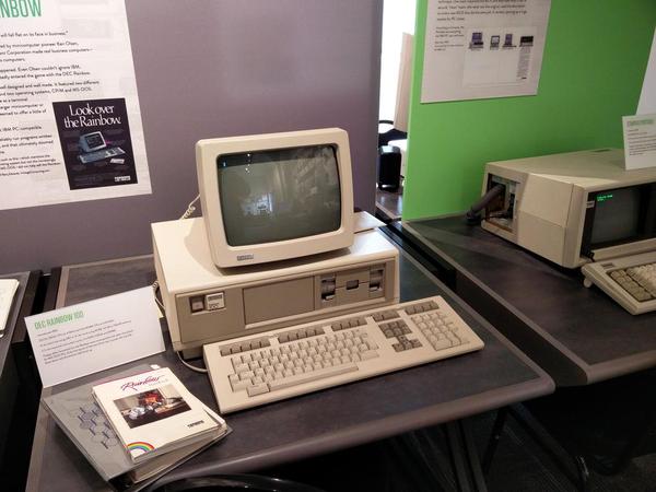 DEC Rainbow(彩虹)100就是整合这三种应用的一次尝试,Rainbow 100内置了两颗CPU:一颗Zilog Z80和一颗Intel 8088,同时支持三种操作模式,VT-100终端,8-Bit CP/M电脑(使用Z80),和16-Bit CP/M或MS-DOS电脑(使用8088)。
