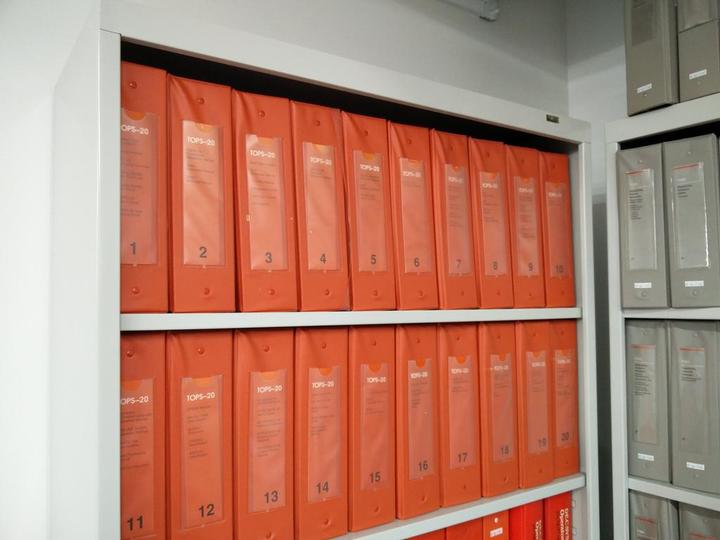 DEC System 20和DEC System 10除了硬件上有所提升之外,软件上也使用了1976年推出的TOPS-20,支持完整的虚拟内存操作,使每个应用程序都可以同时访问262K words内存(18-bit字长上限)。下图中是机房一角的书架上所摆放的TOPS-20操作系统的文档和资料。