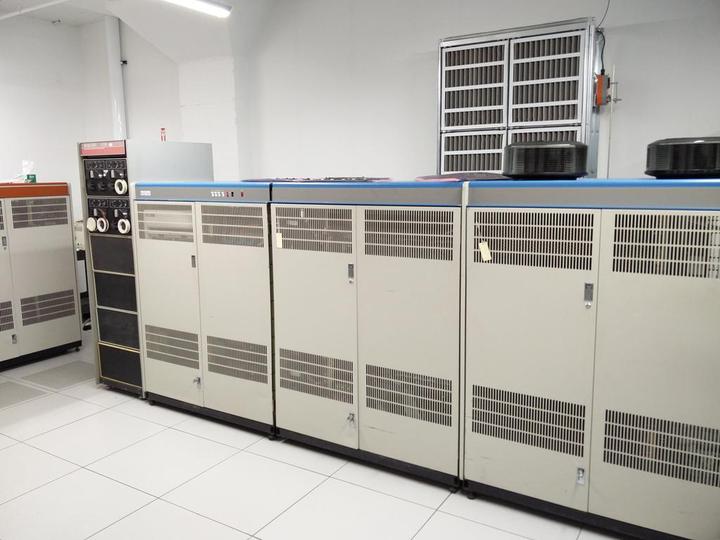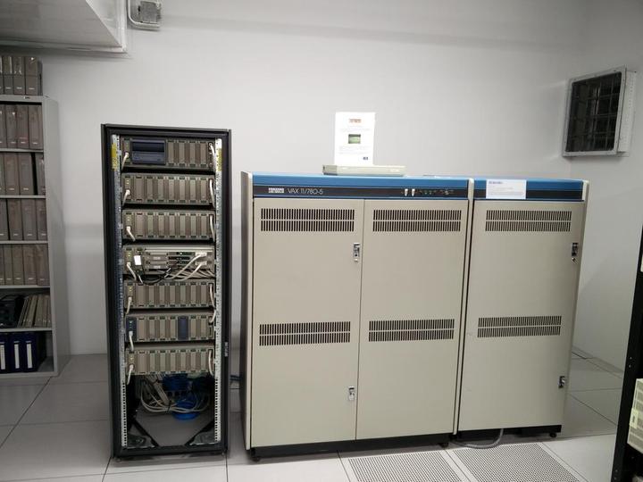 下面的这一台,是一台1984年推出的VAX 11/780-5,作为PDP-11系列的接班人VAX是一台32-Bit、CISC架构的小型机,名称来自于增强的虚拟内存支持功能(virtual address extension - 虚拟地址扩展)。VAX 11/780-5的运行频率为7.52Mhz,性能750KIPS,内存容量则为1MB~64MB。