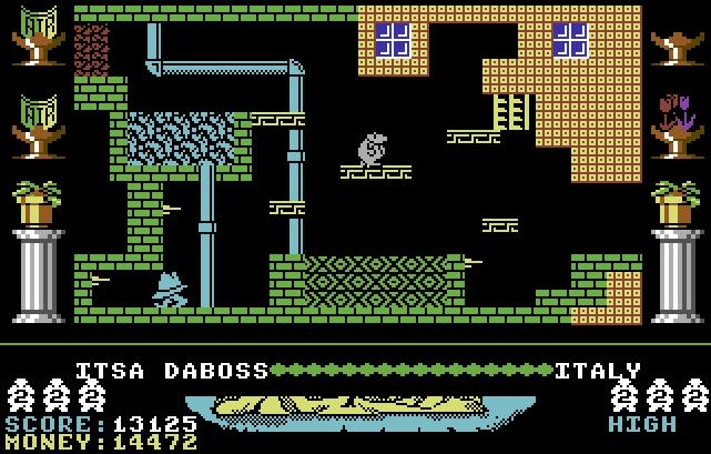 Auf Wiedersehen Monty是德语“再见,Monty”的意思,开发者是英国软件开发商Gremlin Graphics(2000年被英宝格(Infogrames)收购)。Auf Wiedersehen Monty是Gremlin Graphics以鼹鼠Monty为主角的第四部作品。这部游戏的作曲者是Ben Daglish和Rob Hubbard两位宗师级的英国游戏作曲家。在比特革命(上)——8-bit音乐初探 - 古董电脑室 - 知乎专栏 这一篇文章中有所介绍。