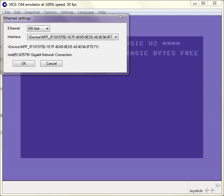 VICE - the Versatile Commodore Emulator当WinVice安装好之后,我们就可以启动WinVice程序,然后在Settings菜单中,选择Cartridge I/O Settings下开启Ethernet settings选项。在Ethernet下拉列表中选择RR Net,然后在Interface列表中选择本机所使用的网卡接口,再点击确定。