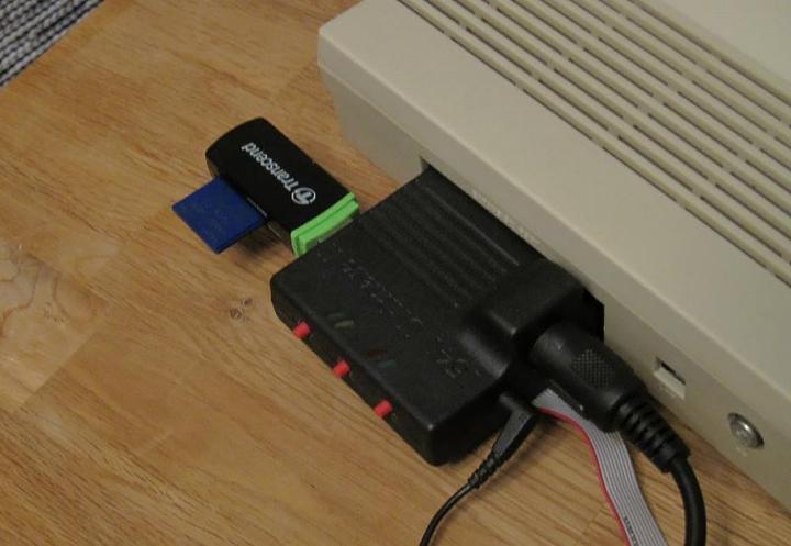 一般来说我会使用Ultimate-II卡带(上图,类似于虚拟软驱)加载磁盘镜像,但是因为64NIC+网卡占用了卡带插槽,而且我不确定是否可以使用卡槽扩展卡同时使用Ultimate-II和64NIC+,所以我改用了SD2IEC方案并且这一组合工作的很好。