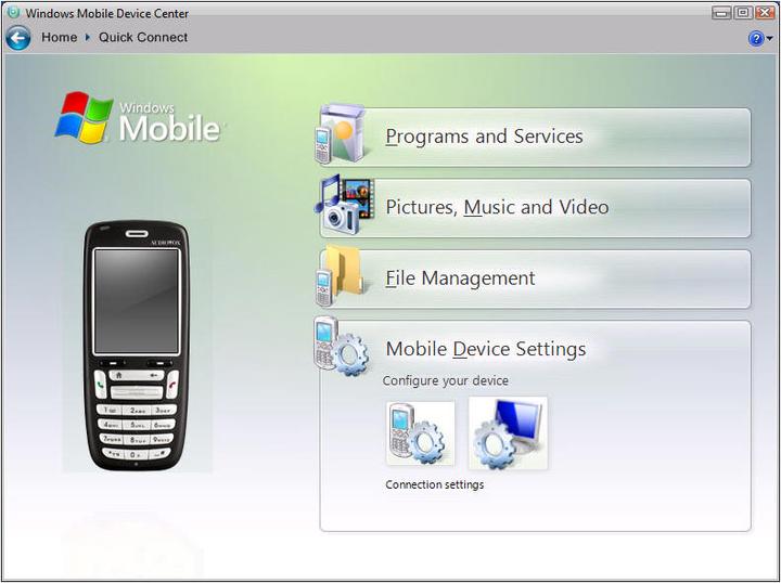 Windows Mobile Device Center是Windows Vista标配的移动设备桌面同步软件。