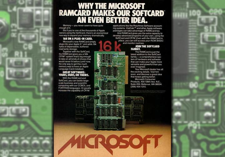 推出于1980年的Microsoft SoftCard是一款为Apple II个人电脑设计的内置式扩展卡。这款扩展卡搭载了一颗Zilog Z80处理器,从而让Apple II电脑可以运行流行的CP/M磁盘操作系统和相关软件(Z80-CP/M平台是当时与Wintel平台最为接近的个人电脑平台)。