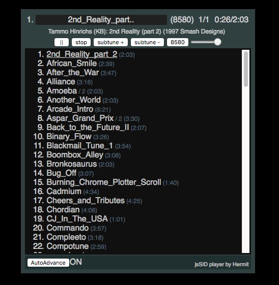 想在浏览器里播放SID音乐文件?没问题!匈牙利大神Hermit开源了他的网页SID音乐播放器jsSID,支持对6581和8580两款SID芯片的精确模拟,如果本次Live的听众达到60人,就可以解锁该播放器的中国镜像。