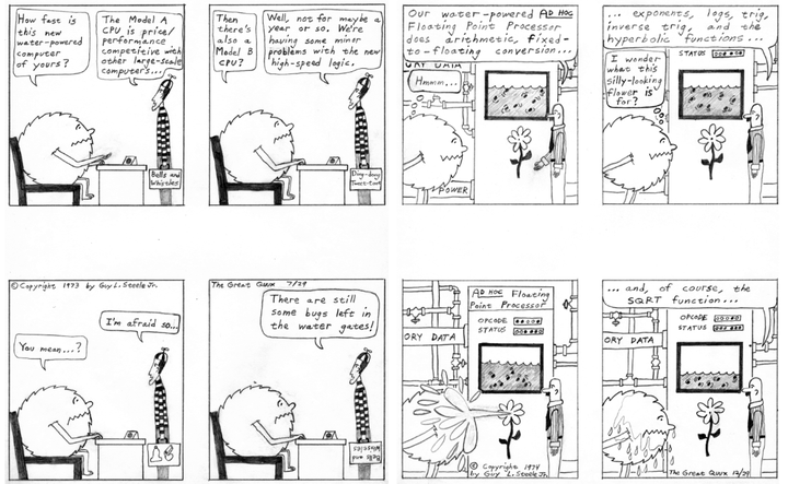 这就是当时电脑科学作为新兴领域的情形,今天,对于STEM职业的宣传。但曾经STEM职业也被大众当时的误解所影响。大概于此同时,电脑科学家盖伊·史提尔二世(Guy L. Steele,Jr.)开始进入人们的事业,他是Scheme编程语言的发起人之一,Emacs文本编辑器许多关键规格的设计者,同样也是早期计算机科学杰出的贡献者。不过他这个故事中出现则是因为他的漫画,在史提尔的漫画中,Crunchly被描绘为一个毛茸茸的小圆点,在电脑实验室里观察到诸多幽默的故事。当今天被称作“The Jargon-1 File”的快照被发表在《共同进化季刊》杂志中时,史提尔的Crunchly漫画也被加入其中并配合的相当完美,因此史提尔就这样命中注定般的被加入到Jargon File的历史进程中,他在Jargon-1 File的基础上编辑了《新黑客词典》并在1983年由哈珀与罗出版公司(Harper & Row)出版,其中包括了他全部的Crunchly漫画。