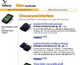 Visor被人们认为是市场上已有Palm设备渐进改良版本,大多数的反馈都颇为积极(热别是对新增的Springboard插槽来说更是如此)。两款低端的型号Visor Solo($149)和Visor Deluxe($179)的价格比Palm的低端型号Palm IIIe都更便宜,其配置基本相同,并且多出了增强版的PIM软件和Springboard插槽(虽然Visor Solo少了同步底座)。稍贵一些的Visor Deluxe还将内存提升到8MB。