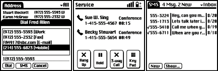 VisorPhone不仅仅是一部拥有更强大通信录功能的手机,还带有许多霍金斯风格的改进。Visor上的四个app按钮可以提供类似T9键盘的联系人搜索功能。用户可以使用电话按钮在任何应用程序中拨叫电话号码(Handspring为底部的硬件按钮提供了新的图标,并用一个电话听筒代替名片盒来表示电话簿应用,这也算是对VisorPhone的一种预示)。与当时的许多手机不同,VisorPhone可以自动搜索联系人并匹配来电号码,因此用户可以看到来电者的姓名而不仅仅是电话号码[25]。