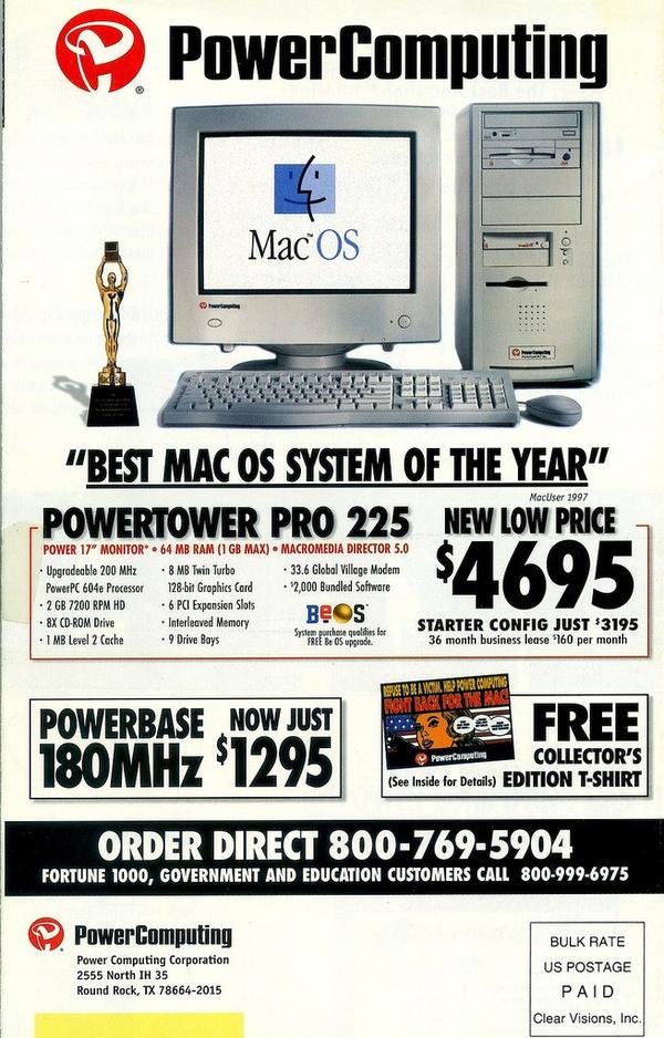 BeOS后来被移植到Mac电脑上,而BeBox则在1998年停产,Be公司决定将注意力集中到BeOS操作系统本身和相关的软件商。就已知的资料而言,虽然BeOS的软件数量很少,但优秀的稳定性和适应性仍然成为BeOS的亮点。1997年,Power Computing决定购买BeOS授权并和自家的Mac兼容机捆绑销售。我还了解到摩托罗拉也试图为StarMax兼容机购买BeOS授权,但这笔买卖并没有成交。