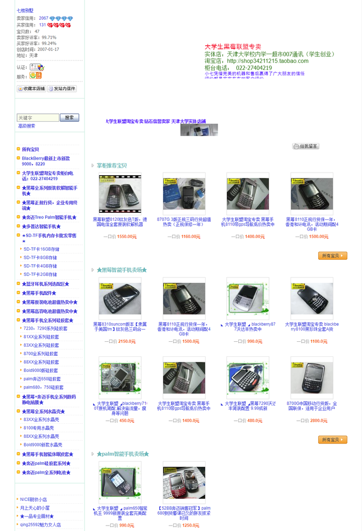 2007年,改名为MaxPDA的HiPalm创造了黑莓在中国大陆的全面爆发,一方面,被“研究透彻”的经典机型黑莓7230、7290的价格逐渐下跌到500元左右,而外形更像“手机”的Blackberry 7100系列则成为千元价位的新宠,各种转制J2ME应用、游戏和电子书如雨后春笋般涌现出来,定制壁纸、铃声等个性化设置也有了完善的“傻瓜教程”,此时的黑莓已经不再是2005年PDA社区眼中功能有限、软件缺乏的“半智能”手机,而是名副其实的“智能”手机了,而淘宝网的火爆更是打破了销售商的地理界限,让黑莓成为当时位数不多的以线上渠道为主销售的手机。