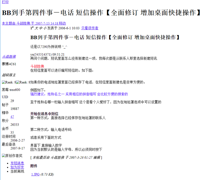 对于当时的黑莓玩家来说,haobo这一“开山鼻祖”的形象更多是“深藏不露”,haobo的所有帖子都只是在展示Blackberry应用的截图,却极少提供社区中更喜闻乐见的教程贴,现在看来更像的是某种软广告,直到2005年秋天Hi-PDA上涌现出的一批技术贴,才结束了中文Blackberry社区的神秘气氛。