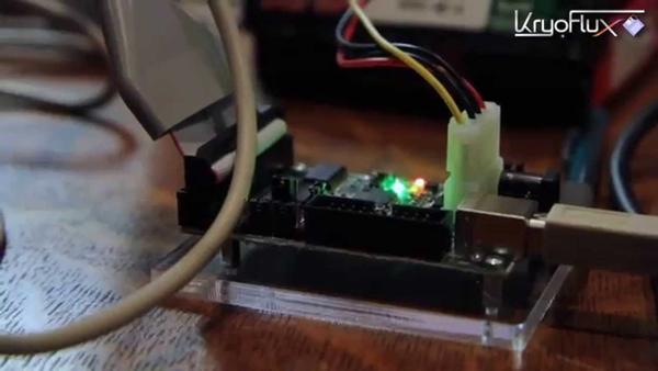 那么视频中的研究人员是怎样从当时软盘里恢复数据的呢?这其中的关键就是视频中出现的KyroFlux,它是一个特制的软驱控制器,能够使用今天较为常见的IBM PC标准软驱读取较为罕见格式的软盘并制作镜像,从而把里面的数据还原出来。