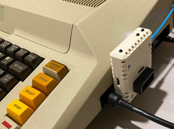 接下来是一个为老电脑开发新的外设和配件的例子叫做FujiNet,这个项目最开始的目的是为世界上第一款游戏家用电脑Atari 800开发一个WiFi网卡,最初它设计的功能与我们前面提到的Wifi 232类似,是为了让Atari 800能够通过现代的无线局域网连接和访问老式的文字的BBS。在开发的过程中,开发者逐渐为它加入了很多新功能,比如说虚拟软驱和打印机,虚拟软驱的功能与仿真软驱类似,可以将储存卡里的软盘镜像文件模拟成软盘,而打印机的模拟功能可以将老电脑的打印输出转换为PDF文件并保存在储存卡中。