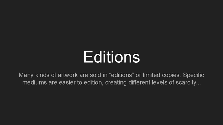 许多种类的艺术品都是以 “版本 ”或有限的副本出售的。特定的媒介更容易进行版本化,创造不同程度的稀缺性......