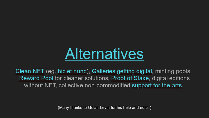 数字艺术家Everest Pipkin批评加密艺术的碳排放问题:https://everestpipkin.medium.com/but-the-environmental-issues-with-cryptoart-1128ef72e6a3