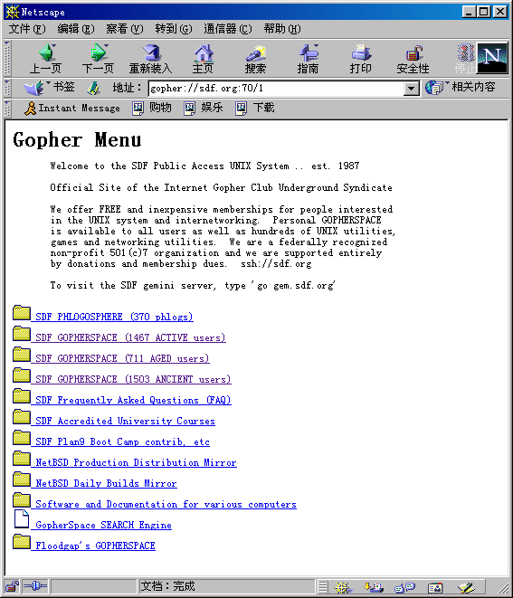 一个协议是Gopher,是1993年由明尼苏达大学开发的以目录形式组织和查询信息的网络协议。另外一个则是Telnet,是一种以仿真终端的形式访问远程软件系统的方式。在中文世界影响最大的Telnet网站要数台湾地区的PTT,而大陆也有一些曾有过广泛影响的Telnet BBS,如水木清华、北大未名、白云黄鹤、南大小百合、日月光华等等,通常是由大学运营并维护的。同时,北大侠客行等MUD游戏也是使用Telnet方式访问的。