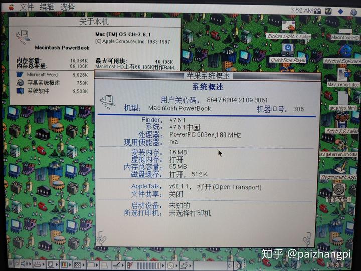 但就如我之前的介绍,我所拿到的这台PB 3400是最低配版,且它在16 MB内存之上运行Mac OS 8.5,自然缓慢至极。因此我已将它降级至Mac OS CH-7.6.1,运行飞快。真机运行Mac OS 7是个有趣的事情,因此本文的体验将全部建立在Mac OS CH-7.6.1的基础之上。