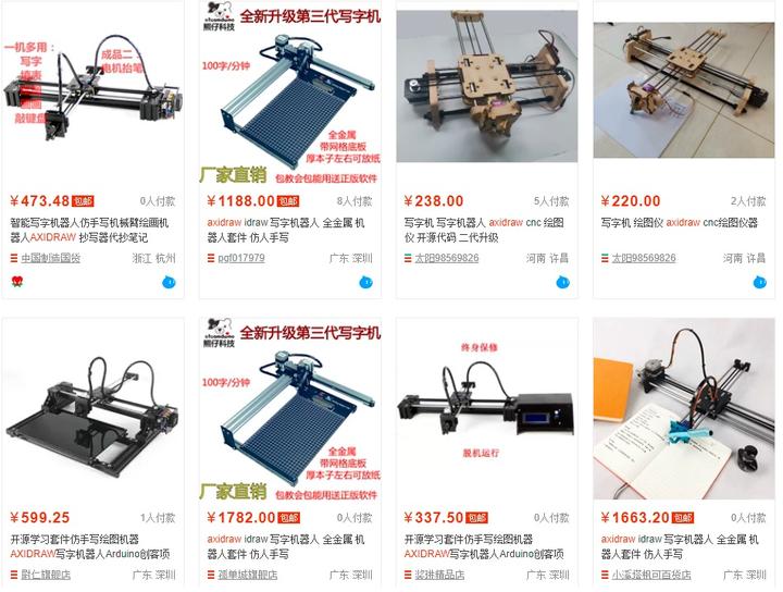在国内使用绘图仪进行生成艺术创作还是一个很新的话题,但是相关的设备并不难买,广告公司使用的刻字机、模切机都可以通过更换笔头的方式转换为绘图仪,而以AxiDraw为代表的“写字机器人”类产品也可以在淘宝上找到。