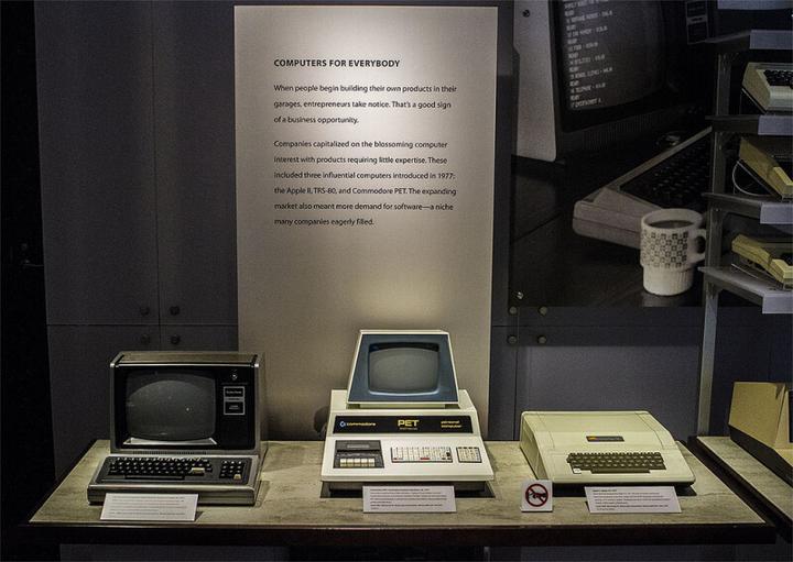 第一个出场的,是著名的Tandy/RadioShack推出的TRS-80,TRS-80发布于1977年8月,仅仅比苹果Apple II晚了两个月,这两款电脑与当年10月发布的Commodore PET一起构成了第一批面向公众发售的个人电脑。
