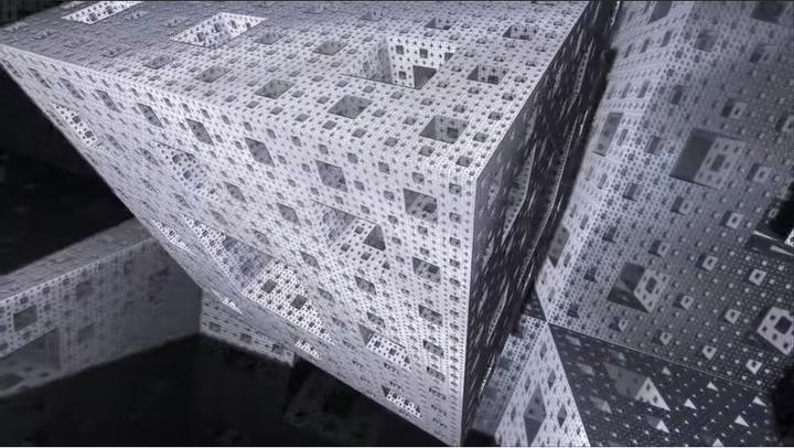 第一个事情的话就会用程序做生成,比如说我们刚才看到的demo里出现大量立方体砖块,其中大砖块里面套着小砖块,这是一个典型的分型图案,只需要用一个公式或者用几个公式就可以生成层层嵌套的图形,分型图像及其变体是程序生成最典型的场景。