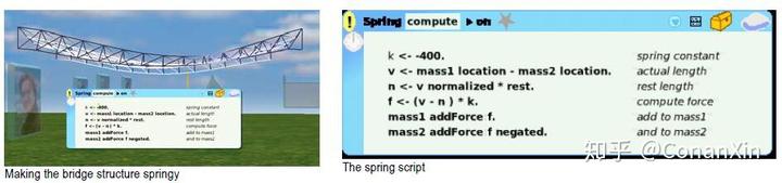 但是现在我们让桥运转起来。这种结构与我们用两个弹簧和一个质量块建造的简单结构相同,但是现在我们使用计算机的力量来制作弹簧和重量块的许多副本,从而形成桥梁结构。