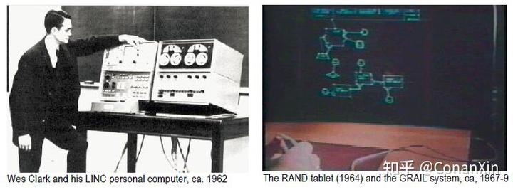 最近创作的另外两个令人惊叹的计算机艺术作品是我对第一台个人计算机的投票——韦斯利·克拉克(Wes Clark)的LINC(其中一个设计要求是它要比使用者矮!)——以及第一个基于笔的系统,兰德公司出色的GRAIL系统。
