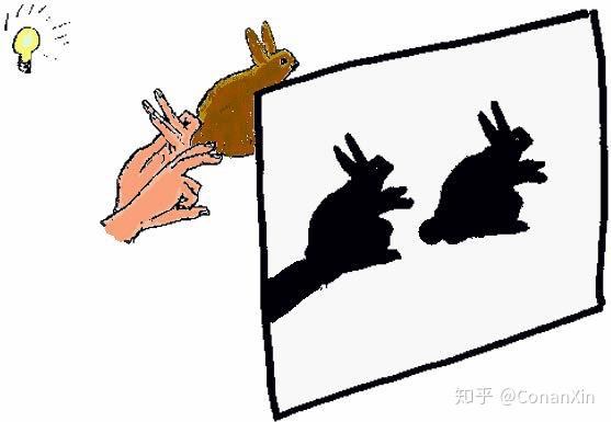让我们把重力作为我们的现象,并把它描绘成兔子。兔子的影子是我们对地球重力的体验和测量。