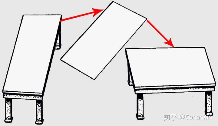 为了说明这一点,她告诉他们桌面的大小和形状完全相同。这里没人相信。然后,她从一张桌子上移动桌面,旋转它,显示它正好适合另一张桌子。这个例子我已经做了几百次了,但是我仍然看不到这个!