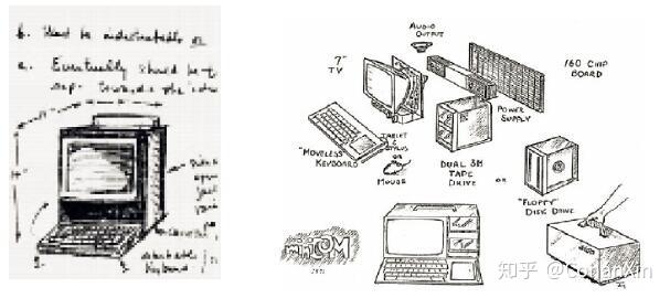 我去那里试图制作一个儿童电脑的实用版本——一个“临时Dynabook”——直到真正的Dynabook技术出现。这是1970年和1971年的想法草图。