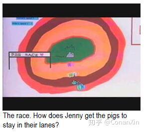 她想要她的猪的真实轨迹,并且需要弄清楚如何让每只猪都在自己的跑道上。她有一个奇妙的想法,她的猪的鼻子将是完美的传感器,用来判断它何时试图逃离它的跑道!