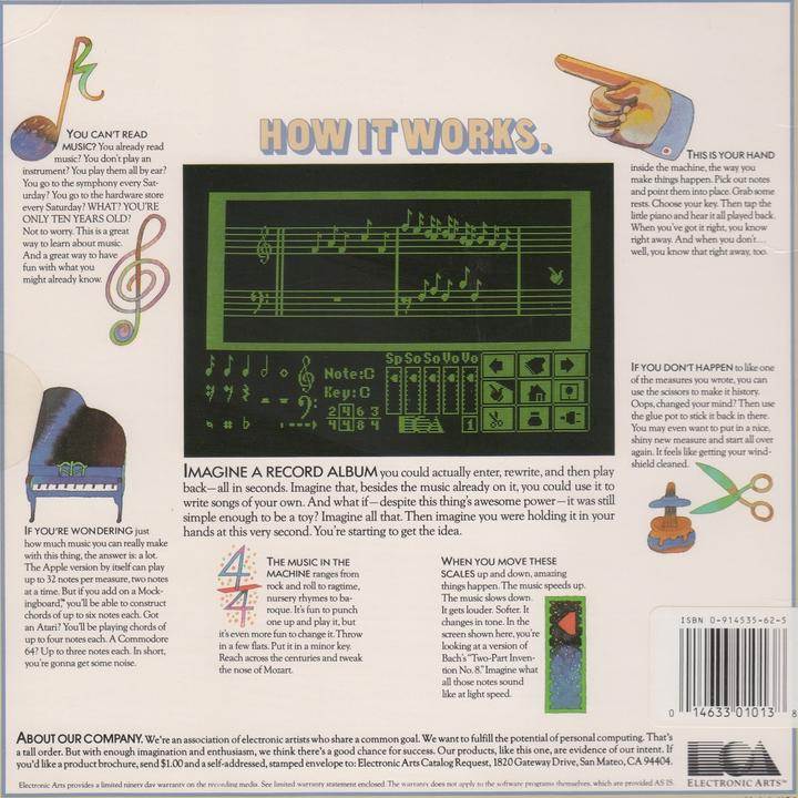 但对于非开发者来说他们并非完全没有选择,早在80年代初,一些市售的商业软件就尝试针对普通用户提供使用家用电脑中的声音芯片编写或演奏音乐的功能。比如说1982 Commodore Music Maker就提供了一款针对Commodore 64的叠加式键盘外壳,可以将Commodore 64的电脑键盘转换为类似钢琴的黑白键音乐键盘,并提供了配套的音乐演奏和编辑软件。