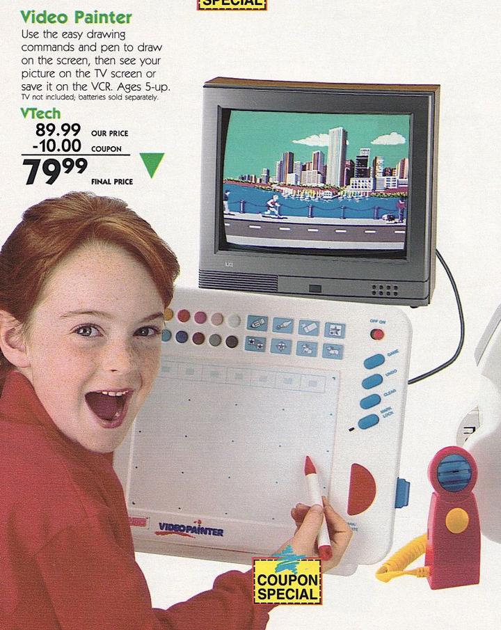 对于今天习惯了廉价平板电脑的读者们来说可能很难理解其价值,但如果我们考虑到“手写笔绘图、动画”和“电视输出”这两个元素的话,类似的功能最早出现1981年,售价15万美元的专用视频编辑电脑Quantel Paintbox上;即使到1990年,在专业领域实现这一功能较便宜的方案也需要使用5000美元左右的,基于Amiga电脑,装备有NewTek Video Toaster套件的视频编辑系统。对于家庭录像制作者来说,Vtech Video Painter可能是他们能够使用的最廉价的视频特效工具。