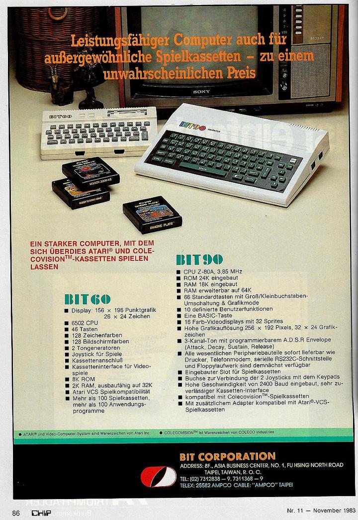 BIT-60和BIT-90的之所以设计成电脑而非电子游戏机的形态,一方面与CreatiVision加入家用电脑功能的原因类似,是对1980年代初家用电脑热潮的回应,而另一方面则是在1982年到1987年间台湾地区的电子游戏禁令下的无奈之举。