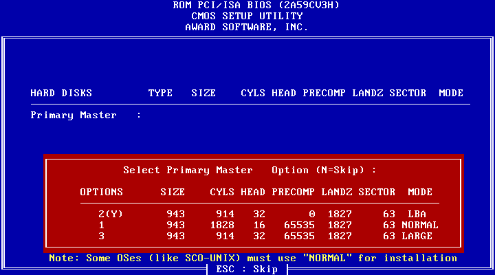 此外由于上面第3点,BIOS中硬盘要选NORMAL模式,而不能用LBA