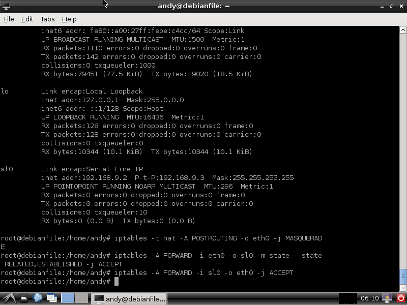 iptables -A FORWARD -i sl0 -o eth0 -j ACCEPT这样我们的Linux电脑就配置好了。