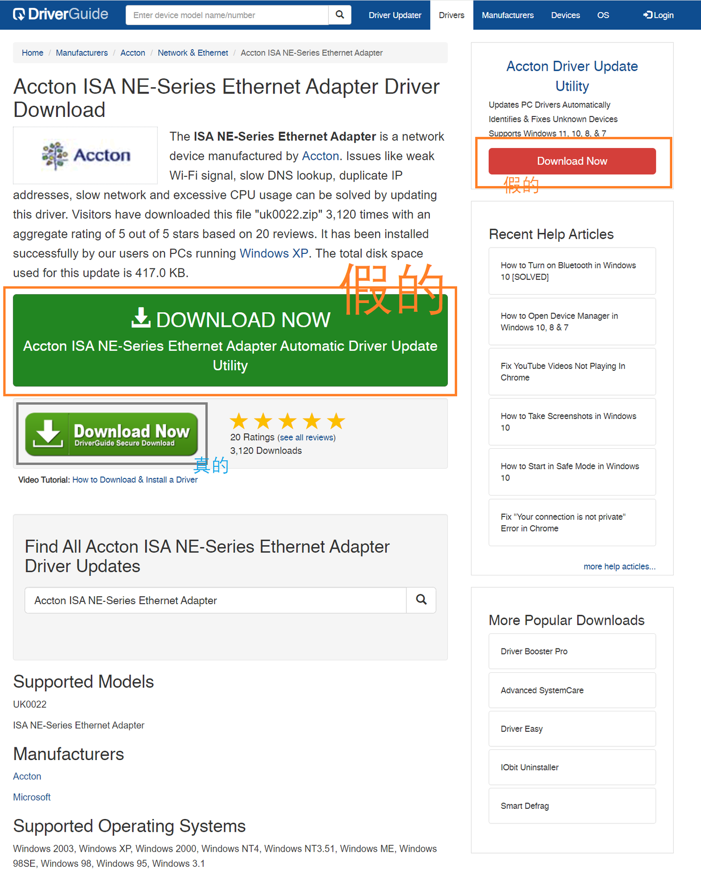 Accton UK0022网卡虽然不算少见,但配置工具却不太容易找到。我最初找到的可以下载驱动的地方是DriverGuide,然而这个网站上有一些垃圾软件和钓鱼软件陷阱,大家需要小心。