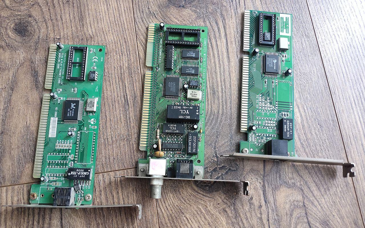 为了展示当代复古计算爱好者在使用NE2000兼容网卡时的真实情况,我使用了两款今年推出的新款复古电脑:Pocket 386和Pocket 8088作为参考PC平台,而网卡则是在闲鱼上买到的三块不同芯片的网卡,分别是: